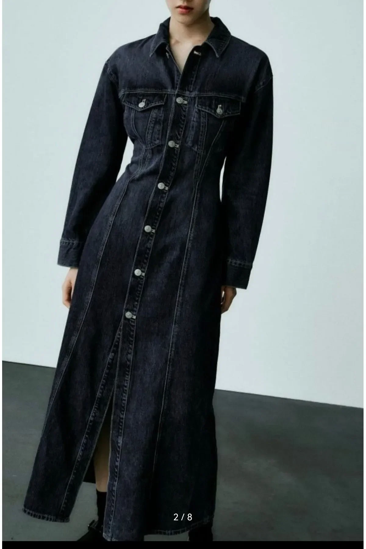 Zara Bele Oturan Uzun Kollu Maksi Denim Elbise ABZRA0098
