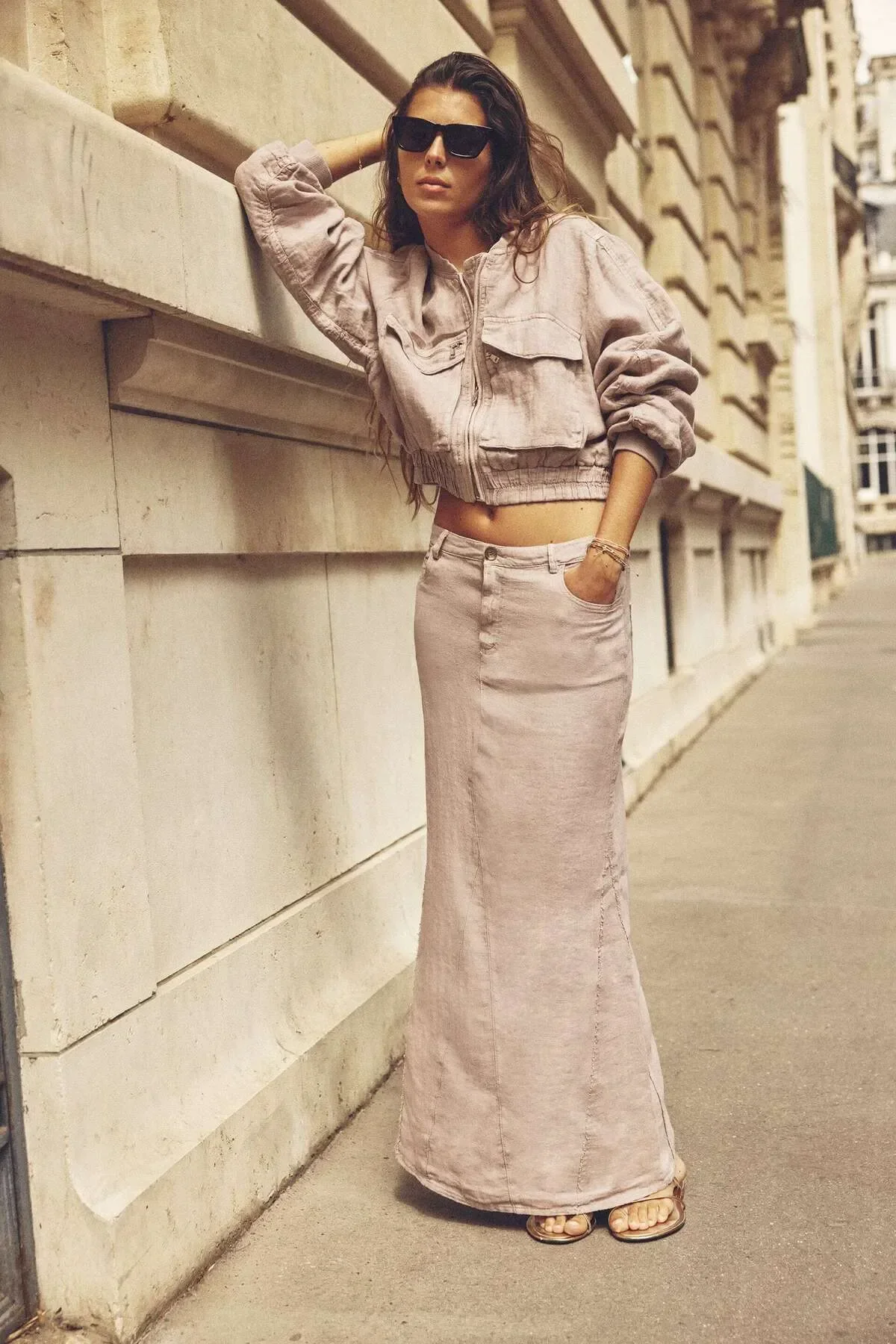 Zara %100 Ham Keten Maksi Etek ABZRA0152