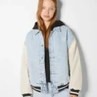 Bershka Suni Deri Kollu Dolgulu Denim Bomber Kadın Mont ABBRS0022