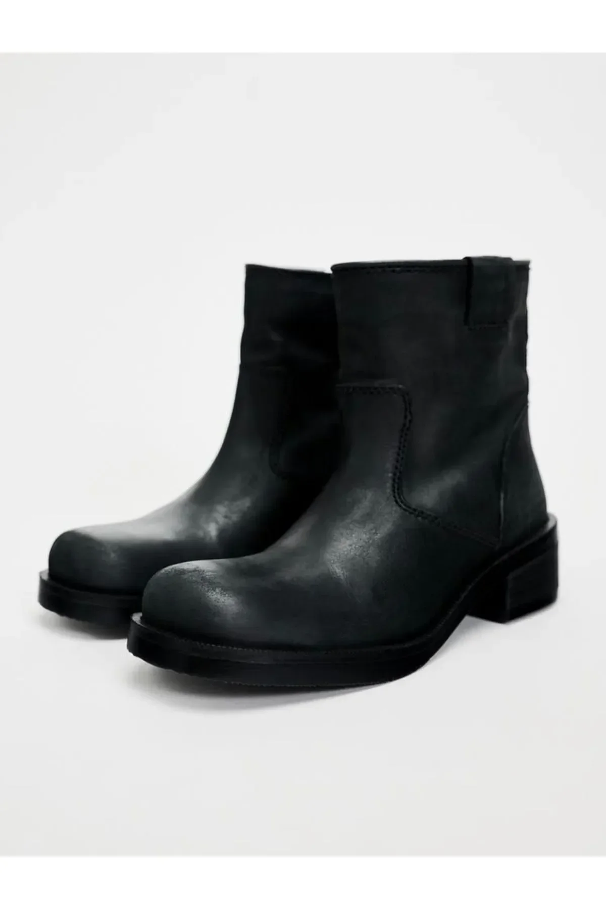 Zara Distressed Görünümlü Hakiki Gerçek % 100 Deri Bot ABZRA0045