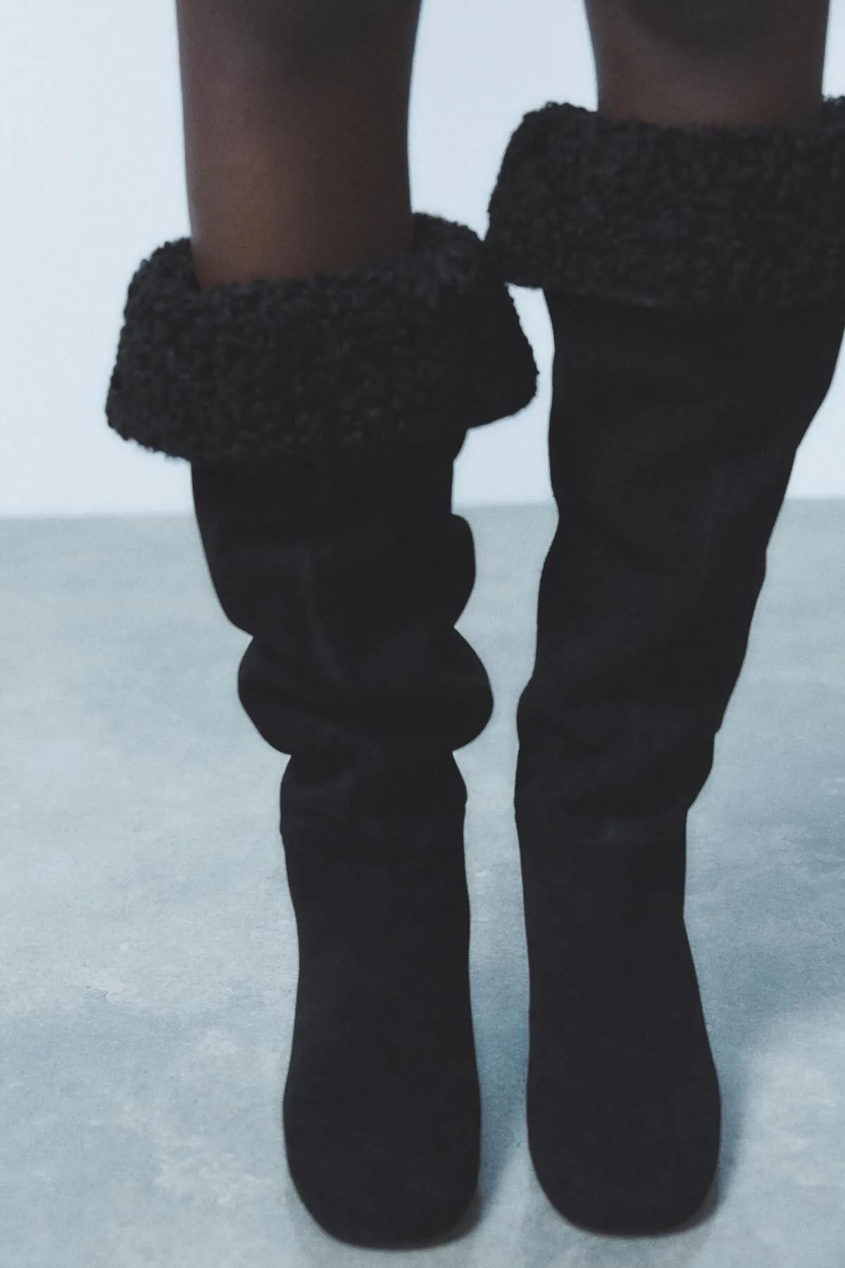 Zara İçi Yünlü %100 Süet Deri Diz Üstü Topuklu Çizme ABZRA1073