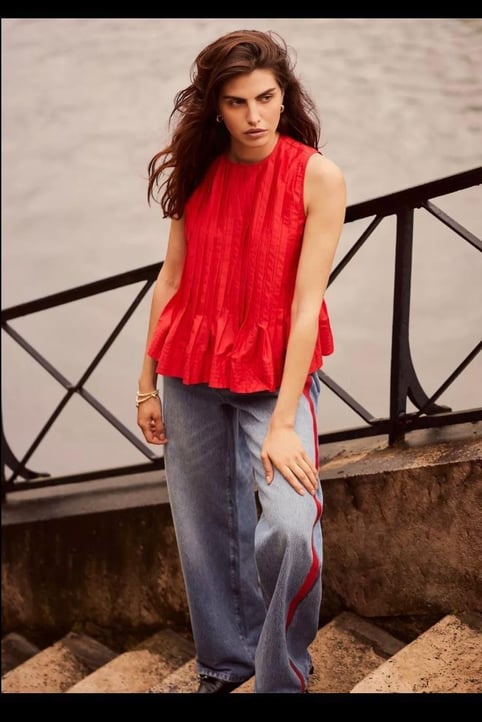 Mint Velvet Kırmızı Şeritli Wide Leg Jean Pantolon ABAB5059