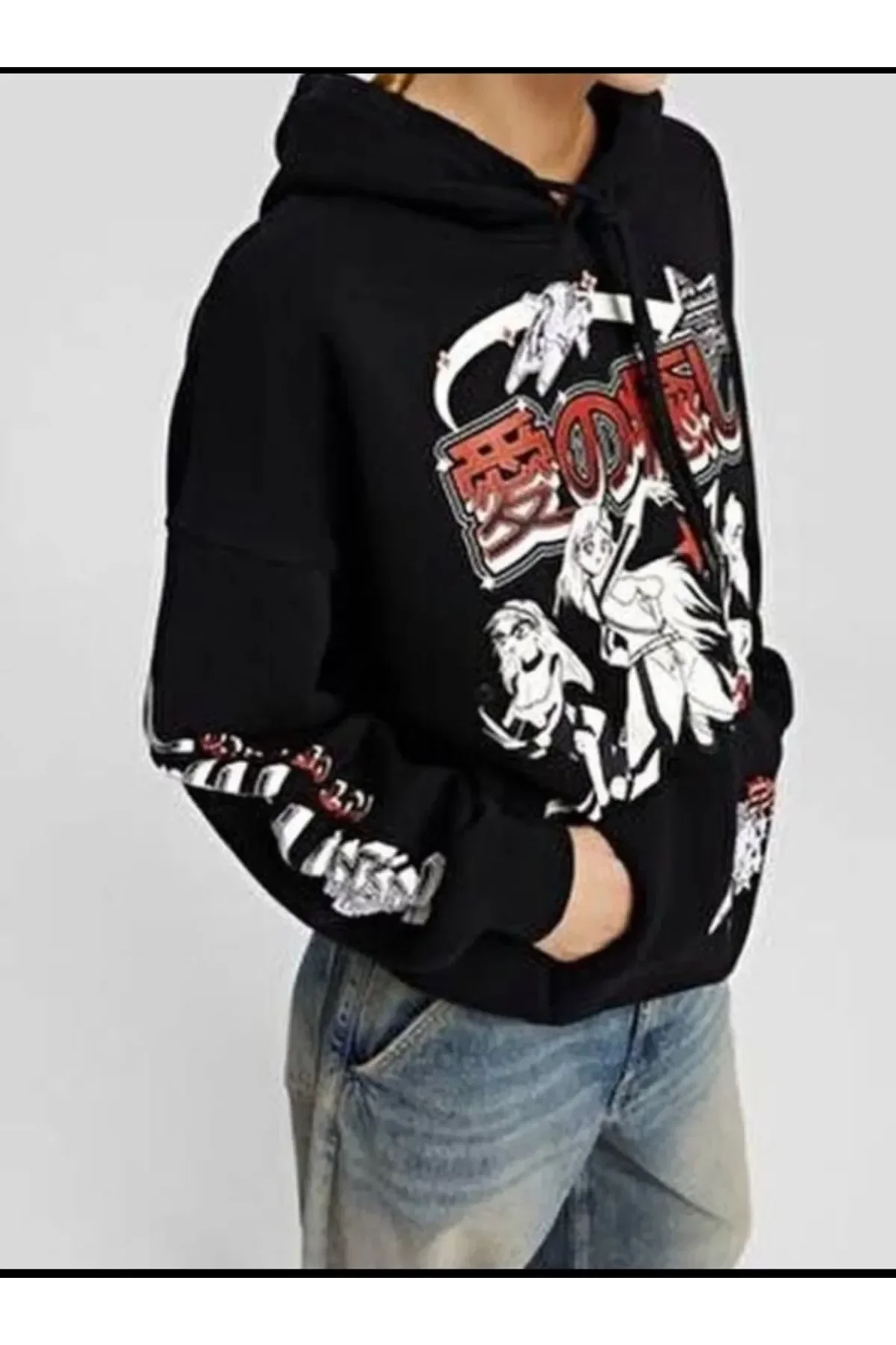 Bershka Kapuşonlu Anime Ovesize 3 İplik Şardonlu Sweatshirt ABBRS0061