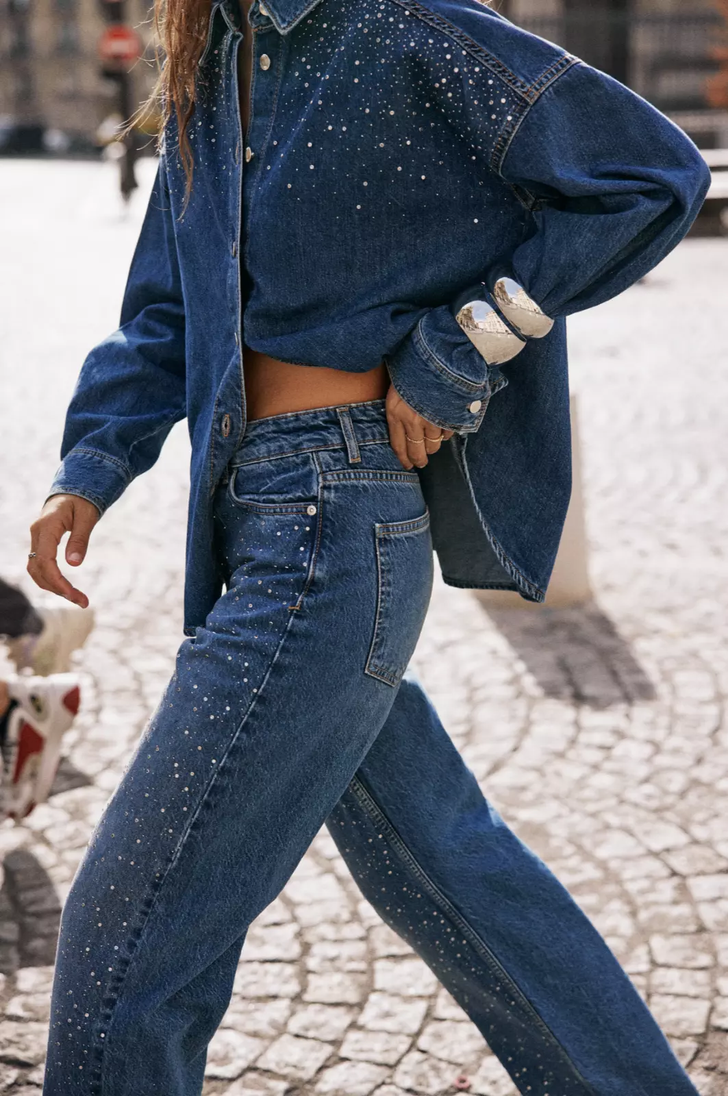 Zara Z1975 Zımbalı Düz Kesim Yüksek Bel Jean Pantolon ABZRA5099